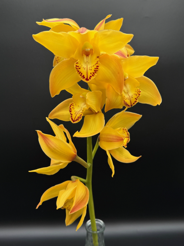 Cymbidium orchids bring a refined, elegant touch to any arrangement with their sturdy stems and beautifully shaped blooms. Each spike is lined with multiple flowers, making them a natural focal point without needing much else around them. Their colors range from soft, classic tones to deeper, more dramatic shades, giving you plenty of versatility in design. They’re a favorite for weddings, upscale pieces, and any time you want a polished, sophisticated look.