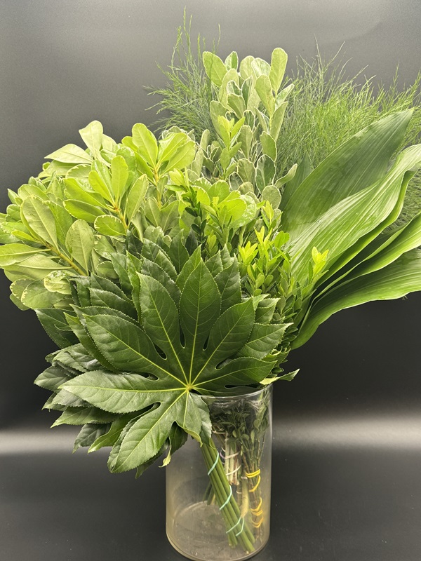 Imported Greens Mix is a designer-friendly blend of fresh foliage sourced from multiple growing regions. Each bunch offers a mix of textures and tones that work well together, giving you an easy way to add depth and variety to arrangements. It’s a great option when you want a ready-to-use selection of reliable, quality greens that complement both everyday and specialty designs.