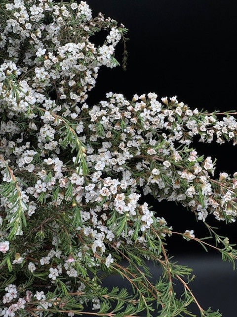 Sterling Range is a flowering greenery known for its fine texture and clusters of small, delicate blooms layered through soft green foliage. It brings a light, airy feel to designs while still providing structure and natural movement.